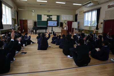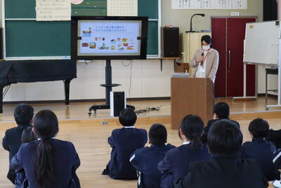 1月22日(木)に栖本給食センター栄養職員の宍倉明美先生を講師としてお招きし、給食集会が行われました。