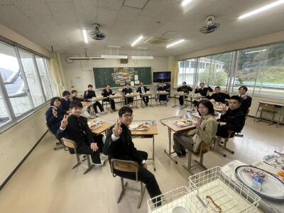 中学校生活最後の給食、これまでの感謝の思いをもちながら、とてもおいしそうに食べていました。