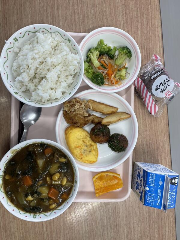 また、給食は人気のメニューが詰め込まれた献立の「お楽しみ給食」でした。全員で円になって給食を楽しみました。