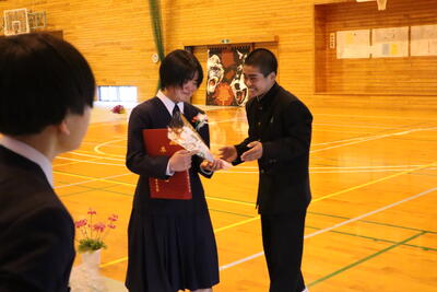 1、2年生は、合唱練習、準備、片付け等、卒業生のために積極的に動いてくれ、おかげで無事に式を終えることができました。
