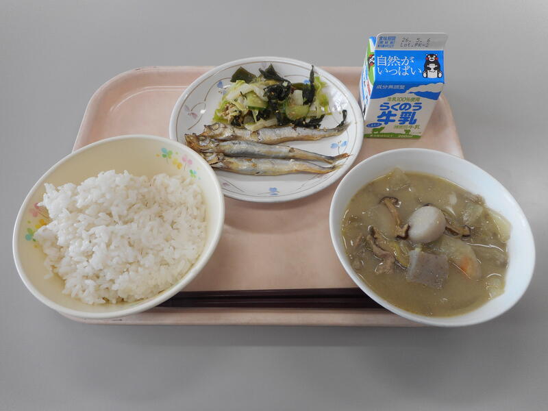 今日の給食のメニューは、【牛乳、麦ごはん、豚汁、ししゃものガーリック焼き、海藻サラダ】です。“豚汁” 素敵です。具材も多く旨味がしっかりと出ており、また、生姜の風味もしっかりと感じられて美味しく、豚汁単体でお腹いっぱいになったほどです。また、“ししゃものガーリック焼き” のししゃもには子どもの頃の懐かしい思い出があります。というのは、子どもの頃、ししゃもの魚卵の部分だけを上手に取り出し、それを最後に一口で食べるという変わったマイブームがありました。給食でその食べ方をしていたところ、何故かクラス中にそれが広がり、クラスのほとんどがしていたところ、当時の担任の先生からひどく注意をされてしまいました。そんなことを思い出しながらいただきました。美味しかったです。