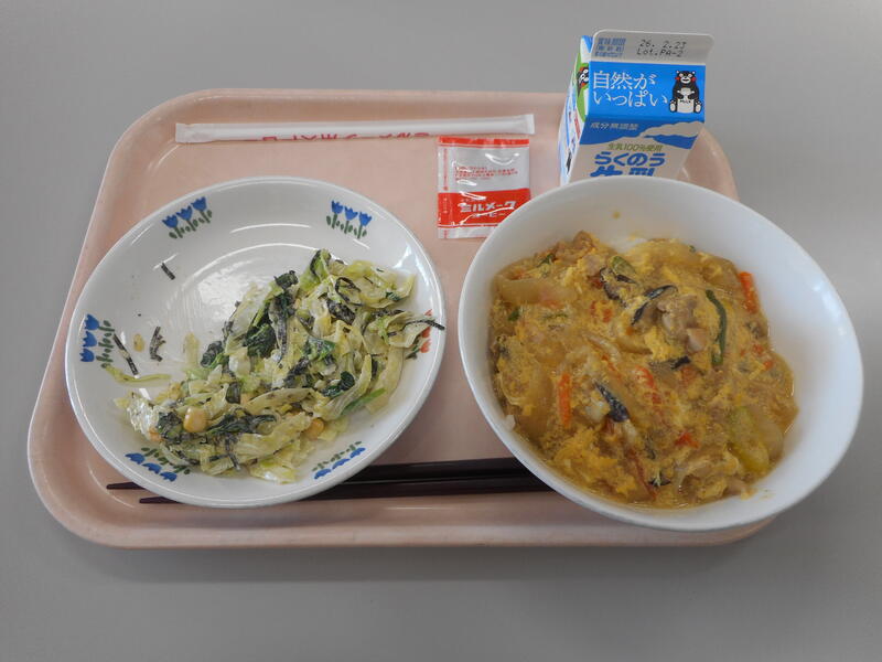 今日の給食のメニューは、【牛乳、南関揚げ丼、磯香和え、ミルメーク】です。メニュー表を見て、そして配膳されたメニューを見て感動しました。というのも、“ミルメーク”。はっきりとは覚えていませんが、小中学生時代のことか教員になった最初の頃か、当時給食の牛乳はビンでしたが、このミルメークを入れ、ストローでかき混ぜ、給食でこんな甘いものが出ることに感動していたことを覚えています。また、“南関揚げ丼” は、南関揚げ独特の食感が何とも言えず、熱々でペロッと平らげてしまいました。美味しかったです。