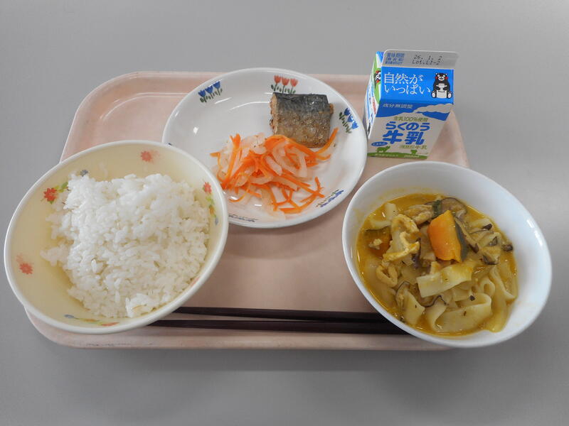 今日の給食のメニューは、【牛乳・麦ごはん・ほうとう・さばのごま味噌煮・ゆず香あえ】です。今日は何と言っても、“ほうとう” と “ゆず香あえ” です。まずは、“ほうとう” ですが、ほうとうは、山梨県を代表する郷土料理で、小麦粉を練って作った幅広の平打ち麺を、かぼちゃやきのこ、肉などの具材と共に味噌仕立ての汁で煮込んだ鍋料理です。煮込むことで汁にとろみがつき、具材と一体化したまろやかで体が温まる味わいが楽しめます。武田信玄の陣中食だったとも言われていますが、確かに、汁にとろみもあり美味しかったです。また、“ゆず香あえ” は、ゆずの皮が小さく刻んで使われており、口に入れると、ゆずの風味が広がり、爽やかな気持ちになりました。今週もありがとうございました。いよいよ、今年も残りわずかとなりました。