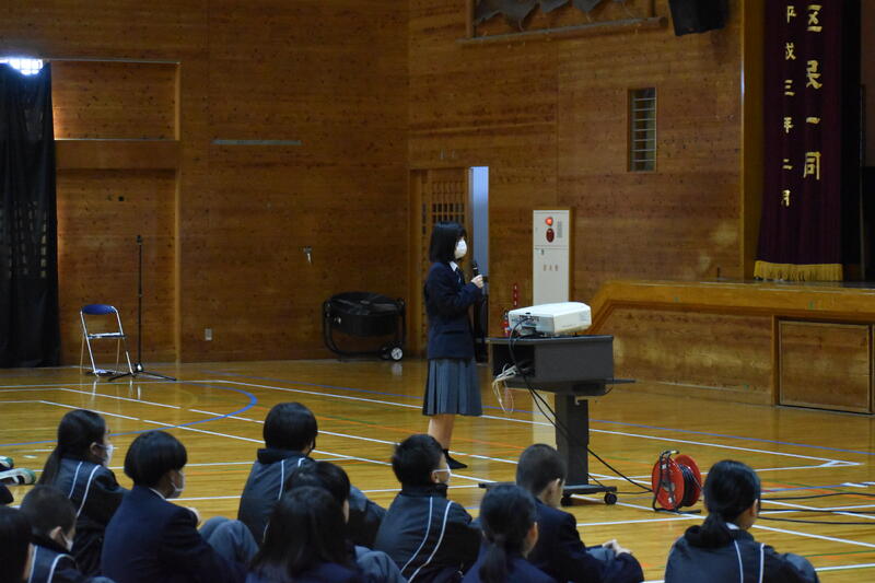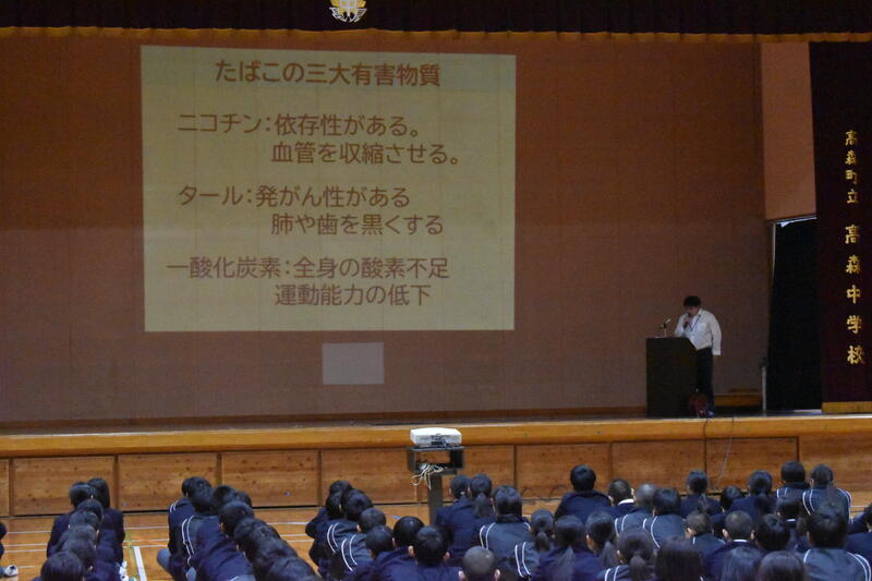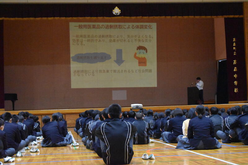 12月9日(火)の6校時に『薬物乱用防止教室』が行われました。阿蘇保健所衛生環境課より腰野様を講師としてお招きし、薬物や一般の市販薬の過剰摂取することの怖さや、現状等について学ぶ機会を与えていただきました。社会における薬物の広がりや低年齢化等について、連日ニュース等でも取り上げられていますが、今回の学びを忘れずに薬物乱用防止につなげていきたいと思います。