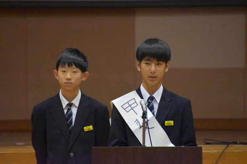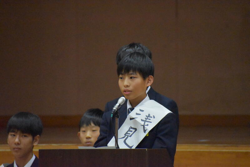 本日、“令和7年度 生徒会役員選挙 立合演説会” が行われました。 今年度は、1年生から4名、2年生から5名の計9名の生徒が立候補しました。9名の候補者それぞれが、今の高森中学校の現状をもとに、「こんな学校をつくっていきたい」「そのために、◯◯のような取組を行っていきたい」と力強くそして堂々と全校生徒へ伝えてくれました。また、各候補者の応援者もそれぞれの候補者の普段の様子や候補者の人となりを伝えてくれるなど心強く・温かいサポートをしてくれていました。