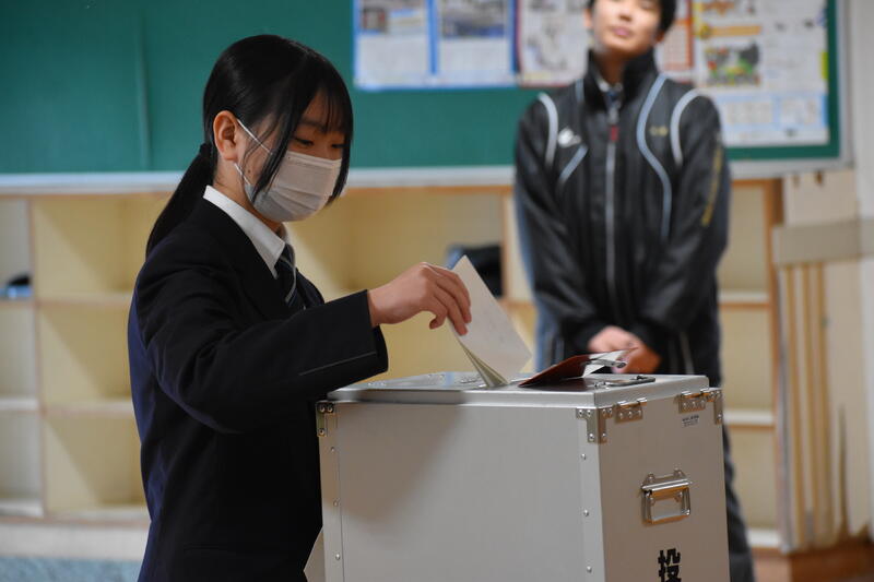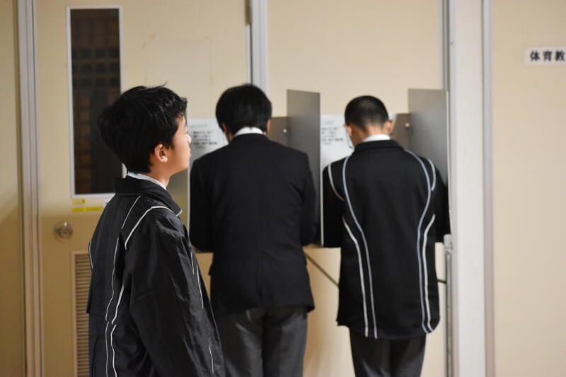 立合演説会後は、体育館ロビーに準備してある投票場所で、全校生徒による投票が行われました。結果は後日発表となりますが、立候補してくれた9名の生徒それぞれが、自分たちの学校を・全校生徒のことを思い、さらによりよくしていきたいと考え・行動してくれたことが何より嬉しくそして心強く感じました。