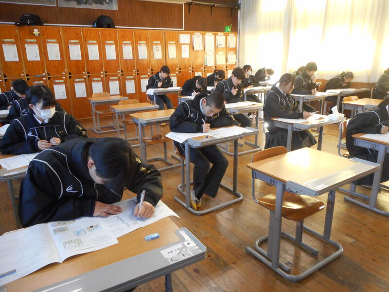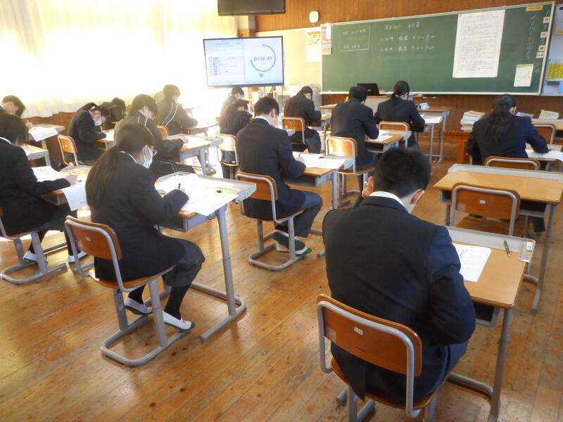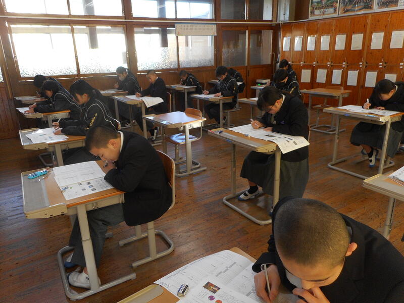 集中してテストに取り組んでいた3年生。集中力を切らしてはいけないと、今回は廊下から撮影しました。