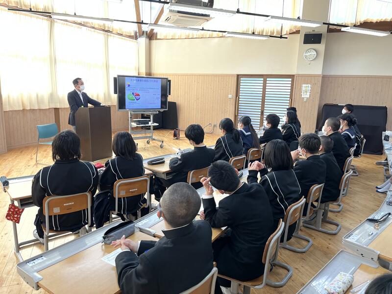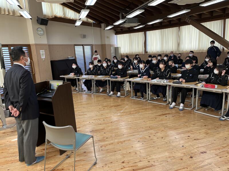 1年生の全員の感想を読みながら、一人一人がしっかり考えていると思いました。特に学習したことをこれからの生活に活かしていきたいということや、家族(親)のことを思い浮かべながら記述している生徒が多かったです。日頃の授業もそうですが、こうやって講師の先生をお招きして心に響く授業を今後も進めていきたいと思いました。講師の荒尾先生、本当にありがとうございました。