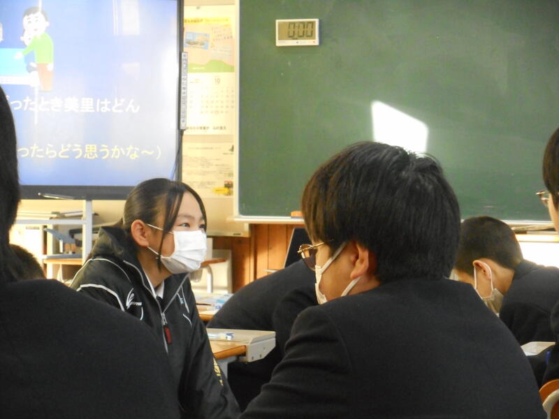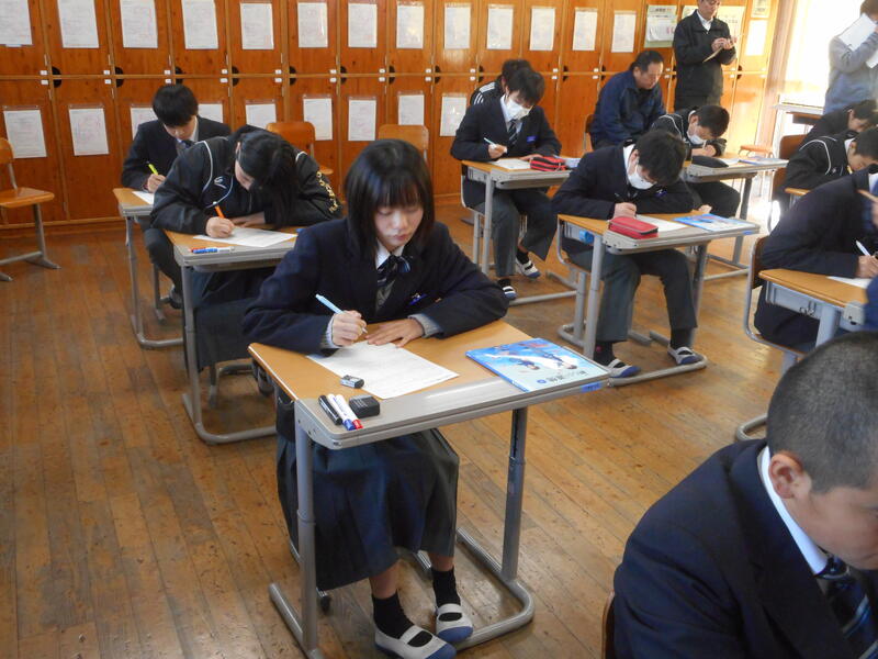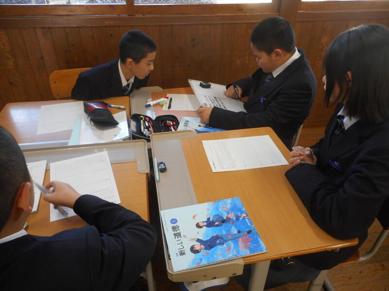 以前も紹介しましたが、11月4日から教育実習に来られている本校卒業生の酒井先生。実習も後半にさしかかり、専門の保健体育以外にも道徳の授業も行っています。本日は道徳の研究授業を1年1組の教室で行いました。「見えない親切」という教材での授業でしたが、終始、落ち着いた授業展開と生徒一人一人の考えを見事に引き出し、「思いやり」について深く考えていくことがでいました。1年1組の生徒たちも、酒井先生の話を真剣に聞き、班でそして個人でじっくりと考える姿は大変立派でした。
