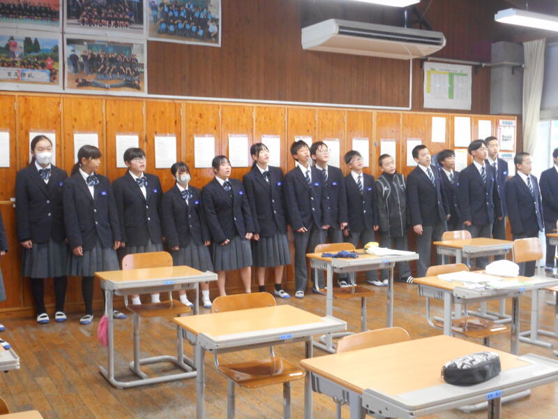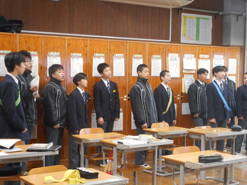 朝、いつものように外にいると、何だか最近登校時間が早くなったなぁと感じていました。そうです、明日が “合唱コンクール” で、それに向けて、朝練をしていたのです。今日は特に外にまで大きな歌声が届いていました。校舎に戻り教室等を見に行くと、それぞれの場所で練習をしていました。男女にそしてパートごとに分かれて練習しているクラスもあれば、本番の隊形で指揮者を前に練習しているクラスも。それぞれの学級で、これまで様々なドラマがあったことでしょう。しかし、間違いなく生徒たちのこの姿は、成長の証とともに思いでの一つになっていくはずです。明日の合唱コンクールで最高の歌声を楽しみにしています。