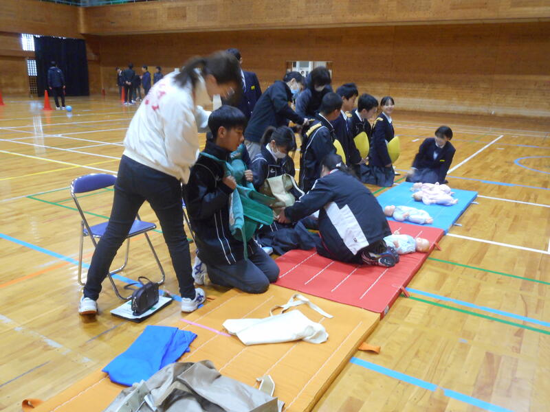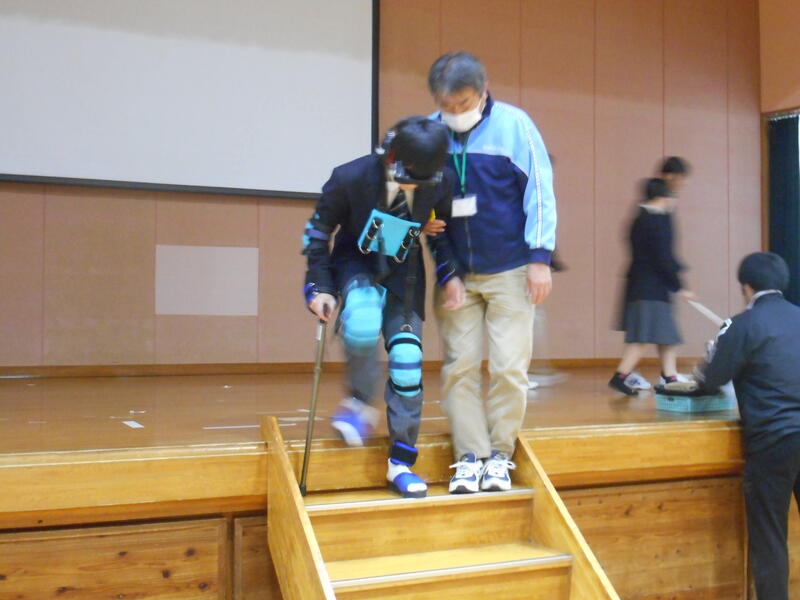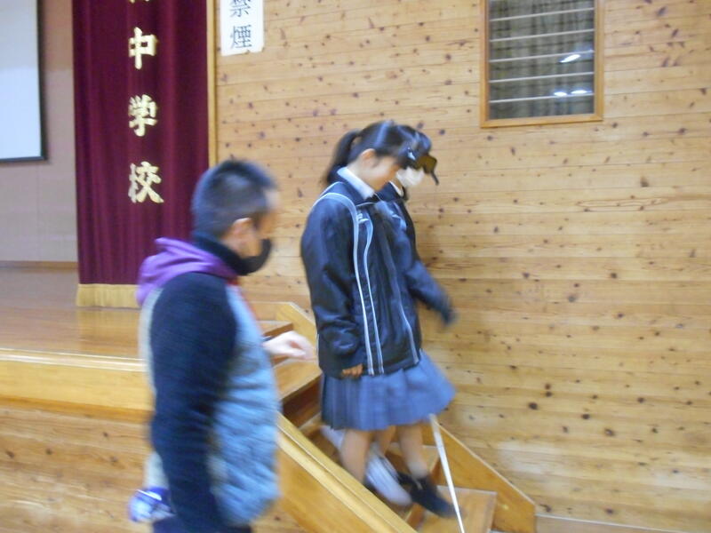 19日(水)の午前中、2年生では「高森ふるさと学」の学習として “福祉体験学習” を行いました。様々な疑似体験を通して、互いに理解し合い、誰もが安心してそして安全に生活していくために必要なことを学ぶことができました。妊婦の方の疑似体験では、妊娠されている方と同程度の重さの装具をつけて、床にある哺乳瓶を拾ったり、靴紐を結ぶことの大変さを身をもって感じることができました。また、視覚障がいの方が階段の上り下りを実際に装具をつけて体験しました。他にも、車いす体験等々を行うことで、改めて、自分たちにできること・自分たちが行動すべきことについて考える貴重な時間となりました。ご協力いただいた高森町社会福祉協議会の皆様ありがとうございました。