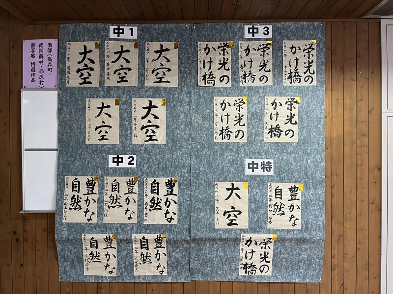 特選の作品は各学校に巡回していますが、高森中学校に届きましたので、作品とともにお知らせします。