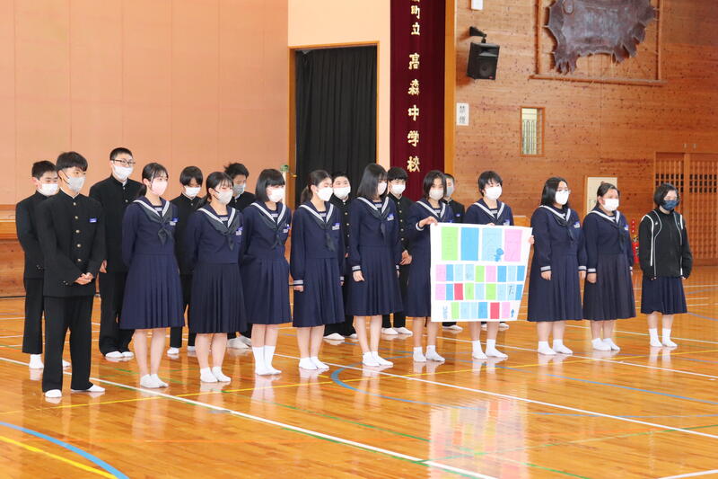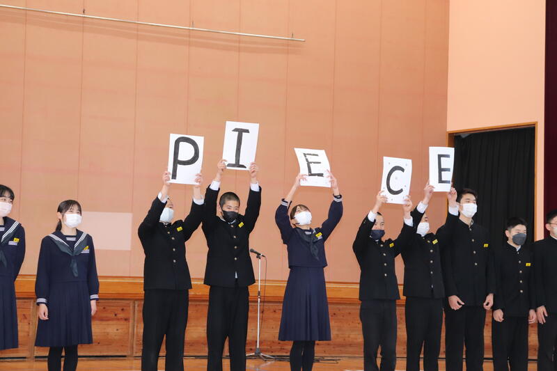 まずは、和やかな雰囲気になるように全校生徒でゲームをやりました。みんな仲が良いです。