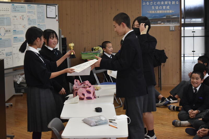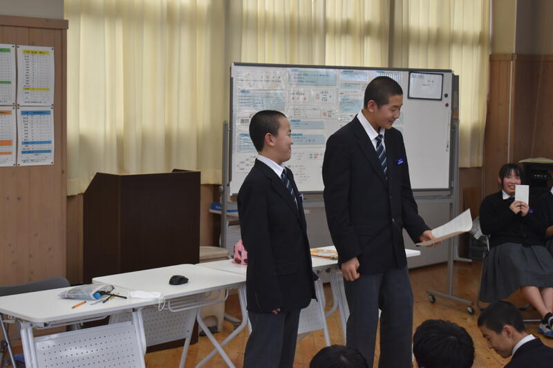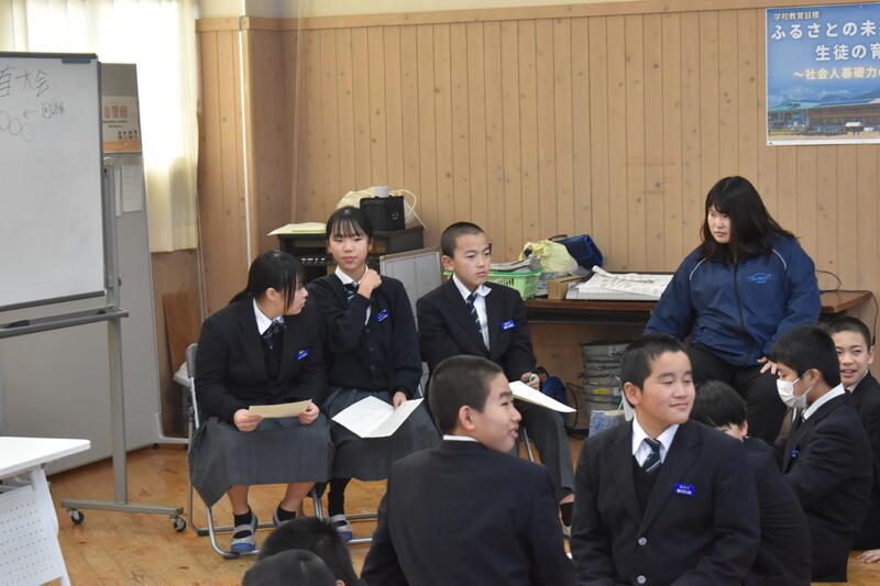 提案に対して、草村町長を始め役場担当の方々からの感想やアドバイスも多々いただき、実りある時間とともに、生徒たちのこれまでの頑張りに大いに感心しました。議長を務めた寺坂君の名進行ぶりにも感心しました。代表2班でしたが、全ての3年生のこれまでの取組はほんとうに素晴らしい内容でした。お疲れ様でした。