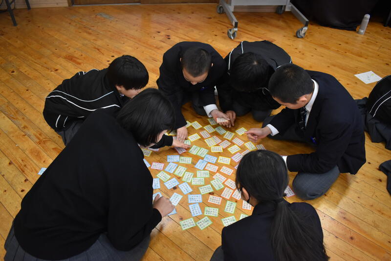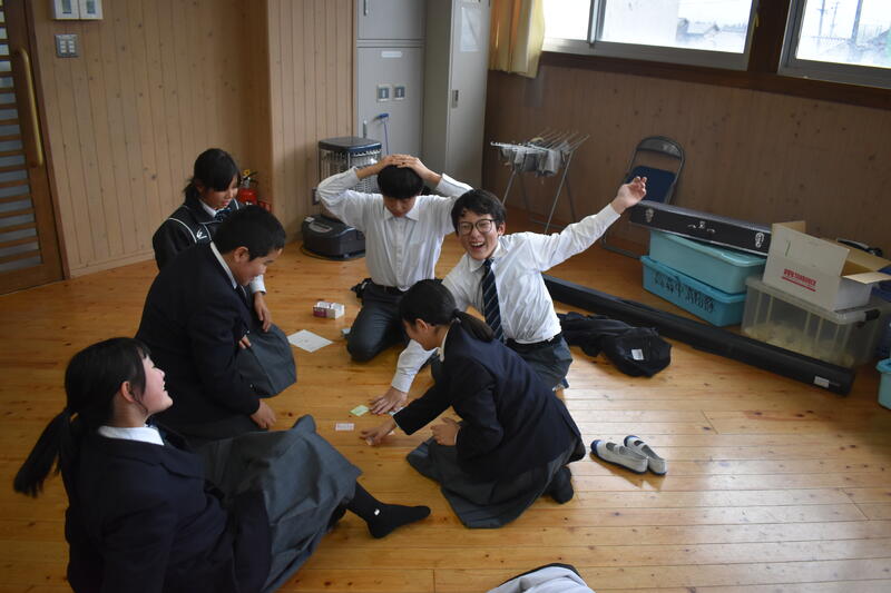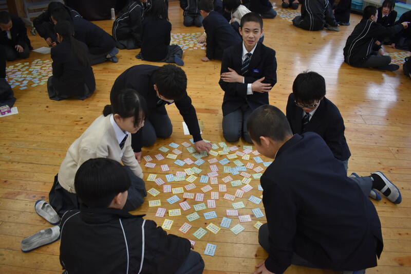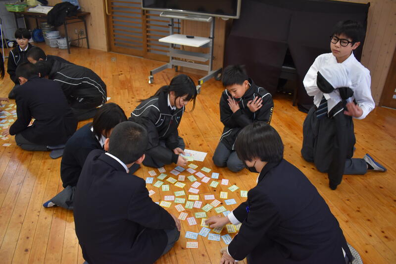 17日(水)5校時、1年生では国語科の学習の一環で、1・2組合同で “百人一首大会” を行いました。進行も生徒たちが行い、学習を通して楽しい時間となりました。参加したかった(中学校時代3年間、百人一首クラブでした)・・・