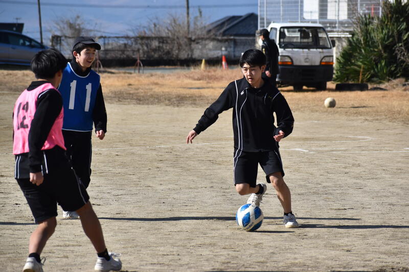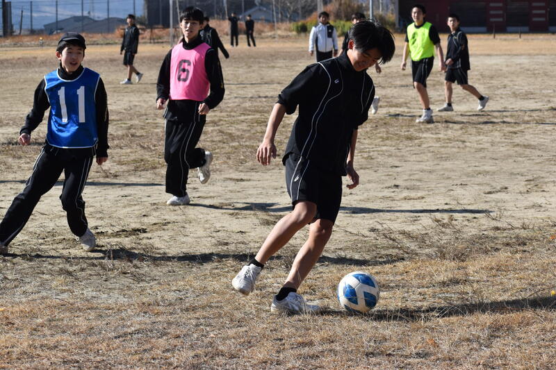 今朝はかなり冷え込みましたが、時間とともに日差しの暖かさが感じられ、雲一つない青空の下で3年生ではクラスマッチ(サッカー)を行いました。私は、あいにく出張と重なっていたため、最後の方しか見ることができませんでしたが、かけ声や声援が飛び交い、3年生にとってはよい気分転換と思いで作りができたのではないでしょうか。