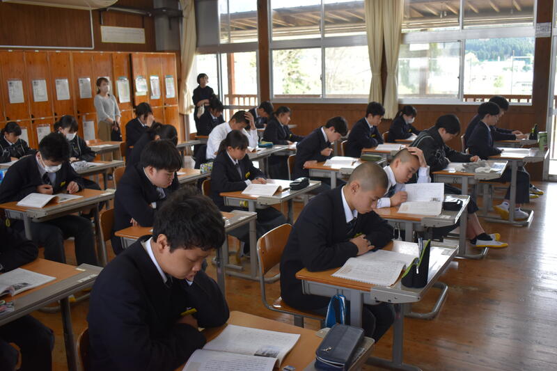 昨日の入学式を経て、本日より全学年そろっての学校生活が始まりました。初日となった本日1校時、各教室等をまわると、1年生は体位測定、2年生は委員会・係決め、3年生は教科書配布と教科書無償の学習が行われていました。どの学年学級でも新たな気持ちで取り組もうとする生徒たちの意欲を感じました。