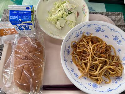 本日のメニュー:ミルクパン、タンタン麺、茎わかめのすの物、牛乳