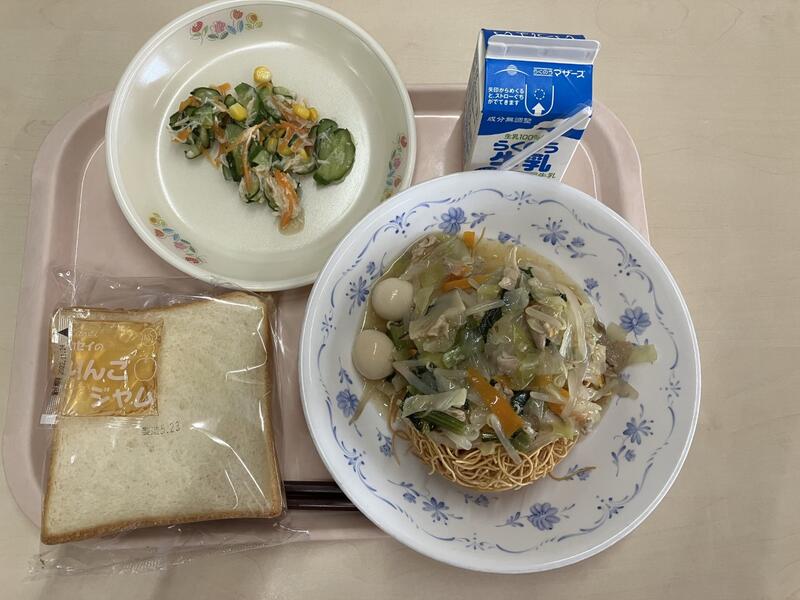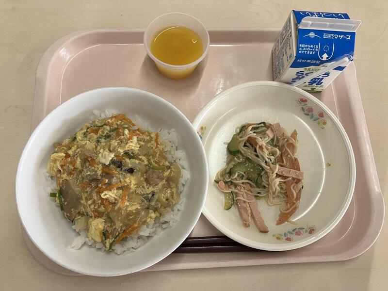 たまねぎ・たけのこ・しいたけ・ピーマンを炒め、甘酢で味付けをした栄養満点メニューです。また、お酢には、酢酸(さくさん)という体の疲れをとってくれる成分が入っています。
