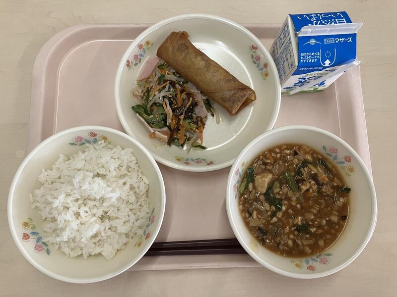 四川料理は、寒さが厳しく、体をあたためるために唐辛子などを使った辛い味付けが特徴です。給食では甘めに味付けをしています。また、今日のマーボー豆腐には、大豆を小さくきざんだものを入れているので栄養満点でした!