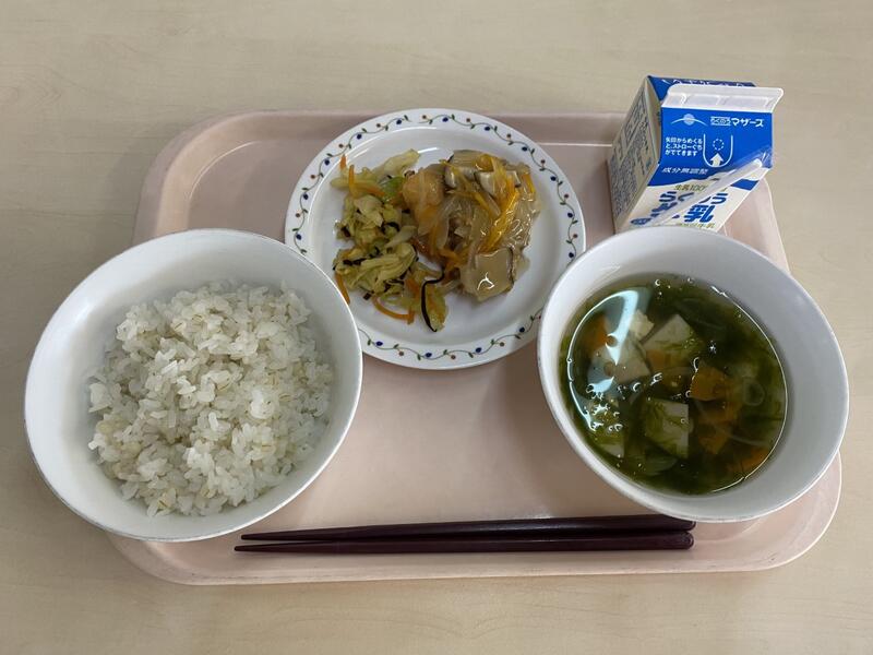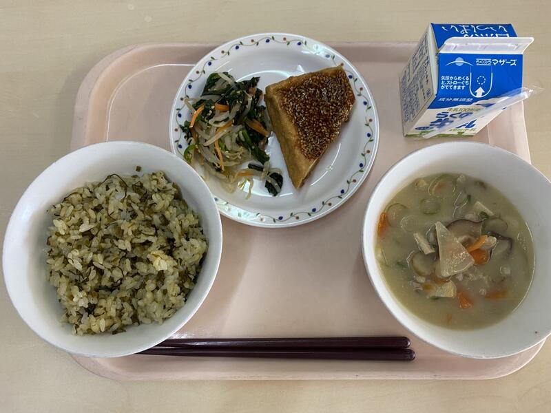 9/10は、十五夜です。今日は、十五夜(じゅうごや)に先がけて、十五夜特別献立です。1年のうちで一番月がきれいに見えるといわれ、「中秋の名月」と呼ばれます。もともとは、秋の作物の収穫に感謝する行事として、いもや、くり、なしやぶどうなどのくだものをお供えしていたといわれています。