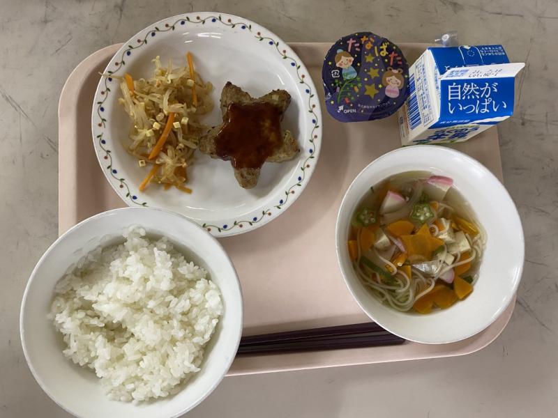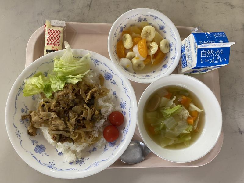 ハヤシライスは、明治時代のはじめに横浜のレストランで作られて、大正時代にカレーライスとともに全国に広まった料理だそうです。うす切りの牛肉をつかいじっくり煮込んで作られます。ちなみに今日のハヤシライスは、疲れをとるはたらきがあるビタミンB1を多く含んだぶた肉を使いました。