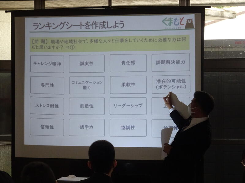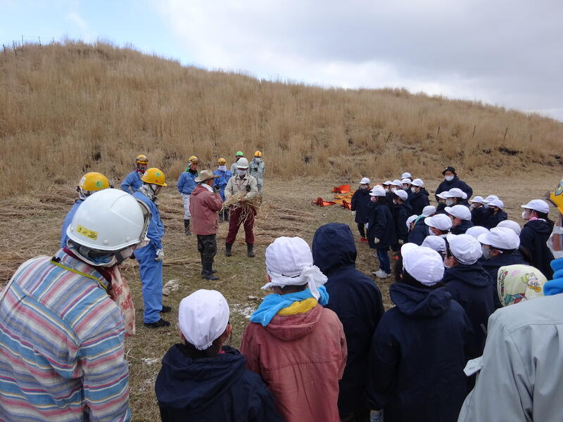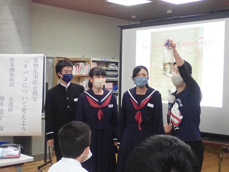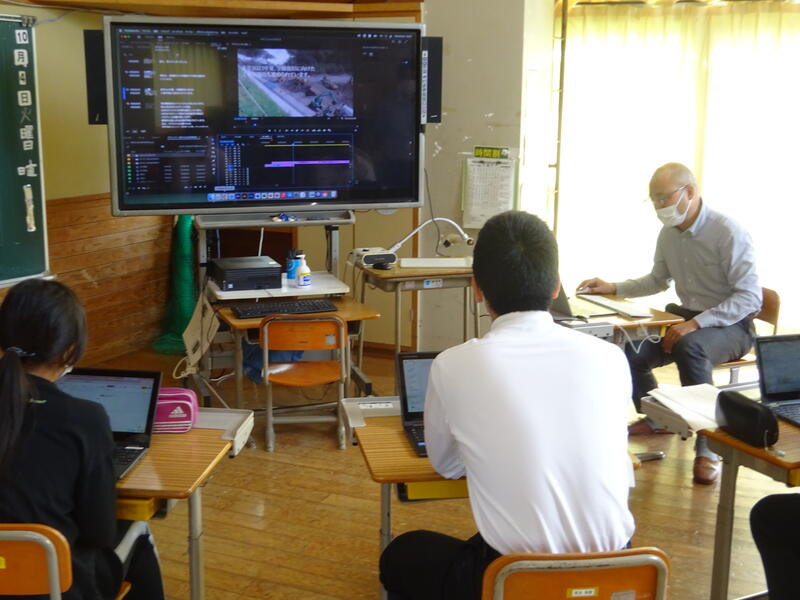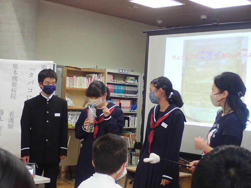 午前中は水俣病の語り部の方から、これまでの人生や大切にしている生き方などお話を伺いました。真剣に話を聞いている姿が印象的でした。午後は、環境学習を行っています。講師の先生の問いかけにも、しっかり反応していました。