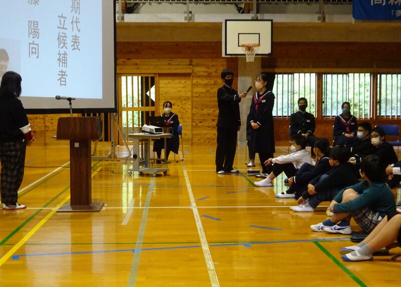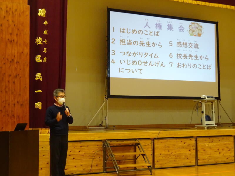 今日は、全校児童生徒による人権集会を行いました。つながりタイムでは、ジャンケンをして心をほぐし、そうだねトークや互いのことを知り合う言葉のキャッチボールを行いました。感想では、「互いのことが知れて良かった。」「知らないこともあるので、聞いてもっと知り合いたい。」等が出されました。その後、自創会会長が「いじめ0宣言」について話をしました。お互いを知ることで、相手のことを思いやり、優しく接することに繋がると思います。みんなが幸せになる高森東学園であるように取組を続けていきます。