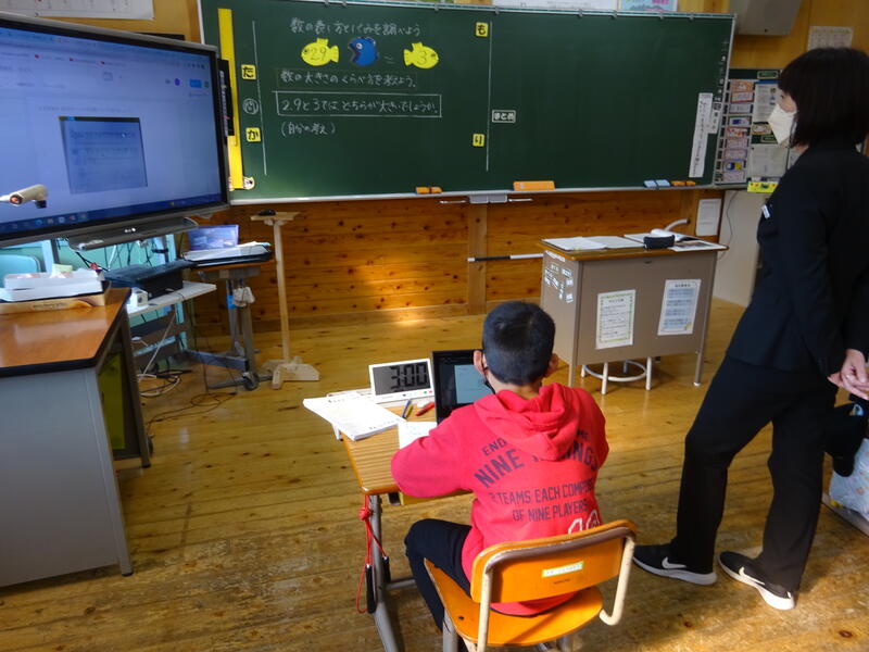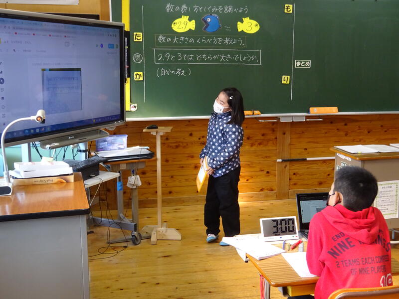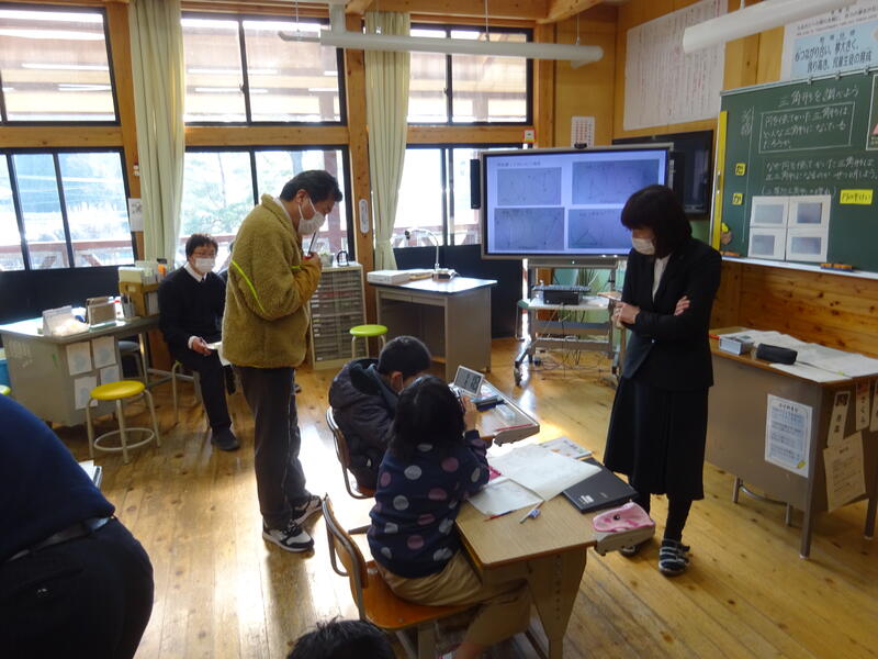 4年生の算数の学習です。松野指導主事様や町教育委員会から来校いただきました。授業では、タブレットを使って自分の考えを電子黒板に表示したり、適応問題を解いたりしました。授業参観の後は、授業や子どもたちの姿に対して温かい言葉や助言をいただきました。参観していただいた皆様、ありがとうございました。