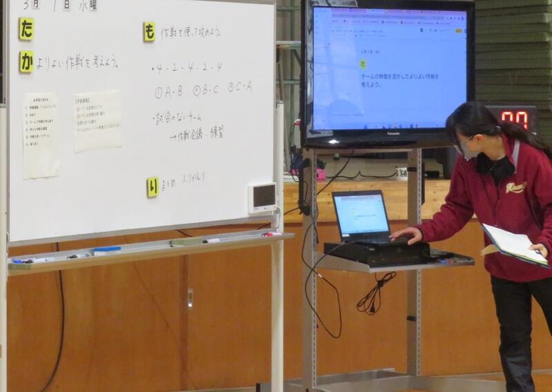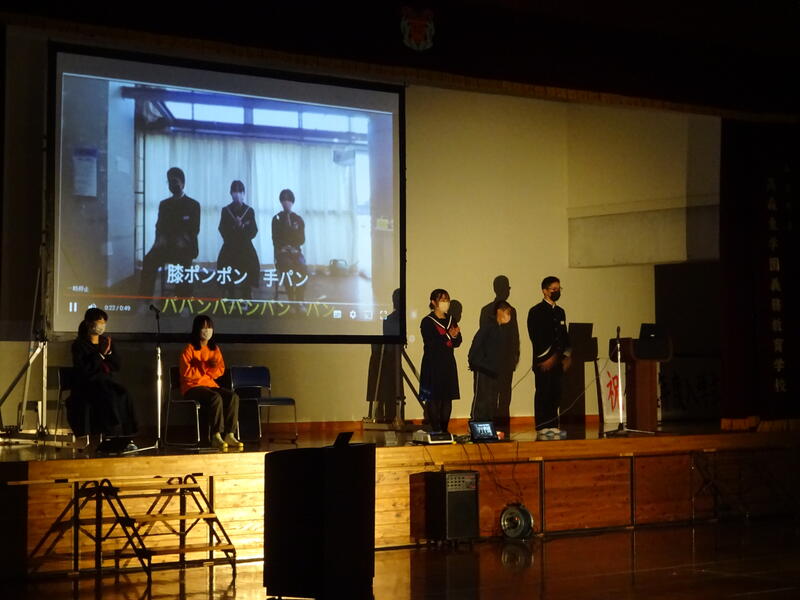 Mブロック集会の様子です。各学年の代表者の発表と発表に対する返しがありました。