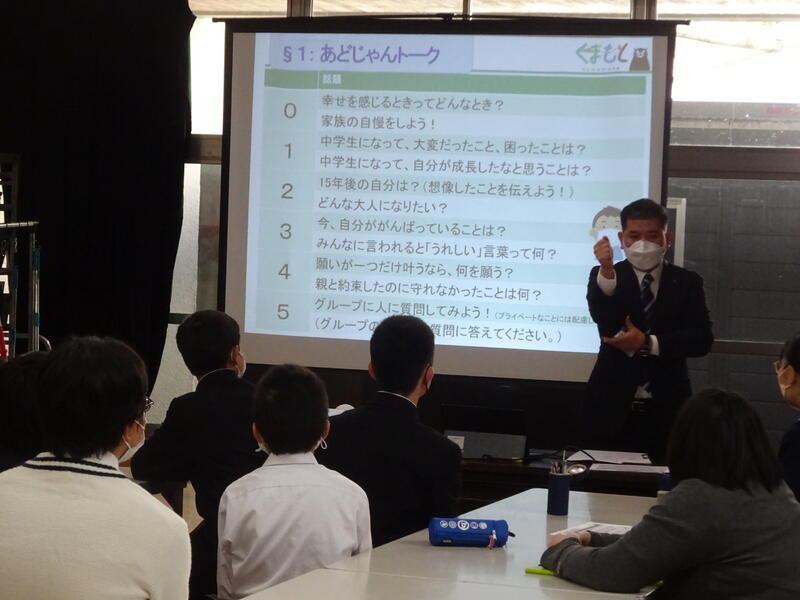 本日は、5時間目に096k歌劇団の公演がありました。また、昨日は阿蘇教育事務所 田木社会教育主事に来校いただき、後期課程を対象に親の学び講座(次世代編)を行いました。