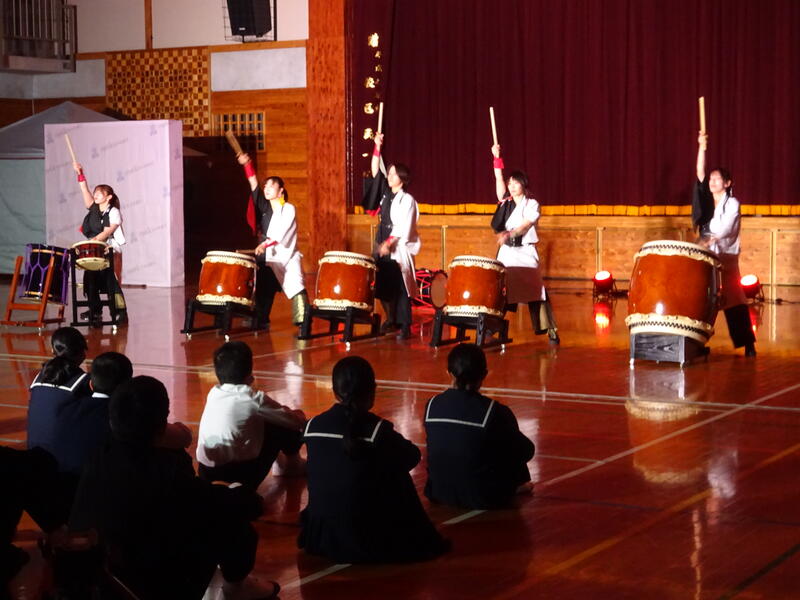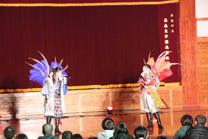 096k歌劇団の公演の様子です。皆さんの衣装・踊り・旗さばき・太鼓等素晴らしく、自然と手拍子や歓声が上がりました。熊本県や高森町などの地域に関する内容も多く、子どもたちの良き学びの場となりました。関係者の皆様、ありがとうございました。