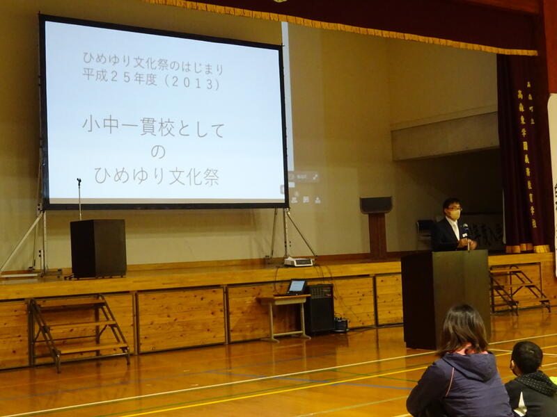校長先生からひめゆり文化祭の由来についての話がありました。