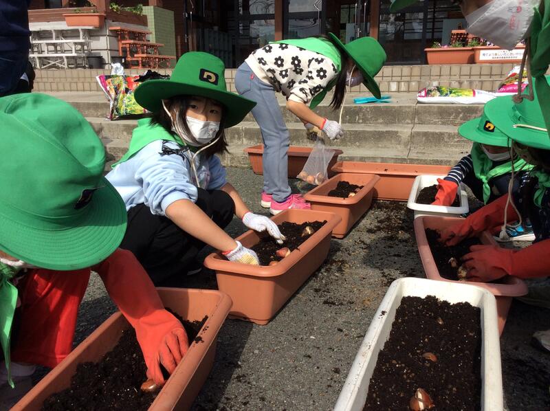 15日(火)にみどりの少年団の活動(1~4年生)の一環として花植をしました。今回は、冬場に強いパンジーやビオラ、春に咲くチューリップの球根を植えました。子どもたちも進んで取り組み、2棟校舎の玄関が明るくなりました。
