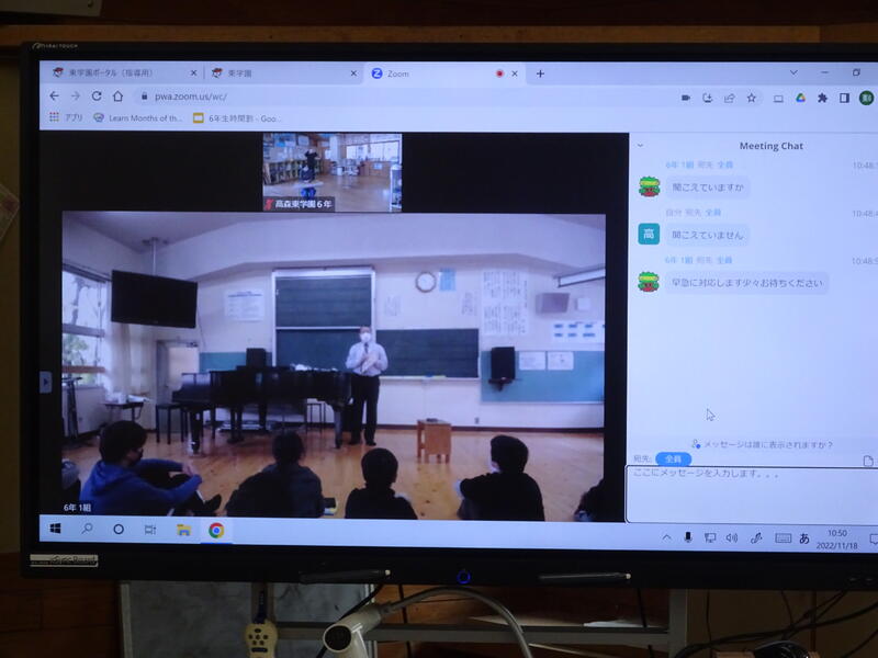 1・2時間目に、Mブロック(5~7年生)が台湾のSANPI小学校と交流授業を行いました。お互いの国や学校での様子を紹介し合ったり、紙相撲を画面越しに行ったりしました。先日は、台湾の方々(大人)との交流会を行うことができましたし、今回は子ども同士の交流ができました。子どもたちにとっては大変よい機会となりました。