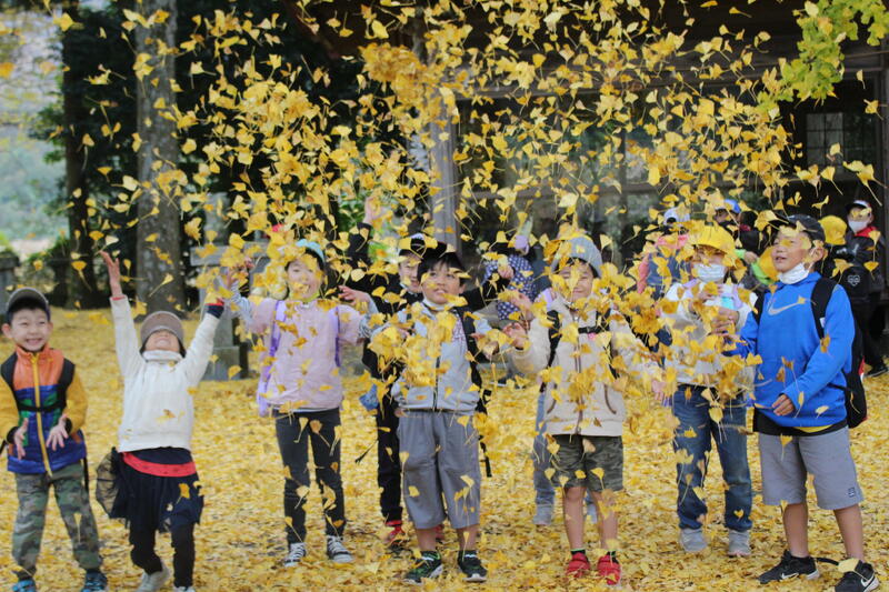 18日(金)にSブロック地域探検鍛錬遠足を行いました。学校からフルーツガーデン・川上神社・朋遊館と8.5kmほどの距離でしたが、子どもたちは元気に歩くことができました。歩きながら地域の秋の風景を味わい、川上神社ではいちょうの葉のシャワーを楽しみました。
