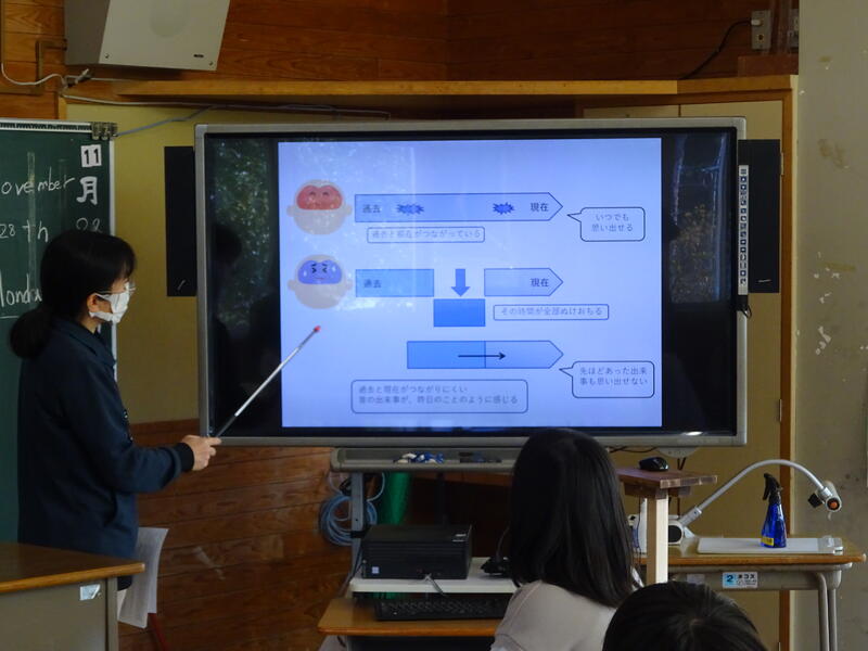 認知症サポーター講座を8年生対象に行いました。町包括支援センターの2名の方に来校いただき、脳の仕組みや認知症の方への対応の方法などを学びました。センターの皆様、ありがとうございました。