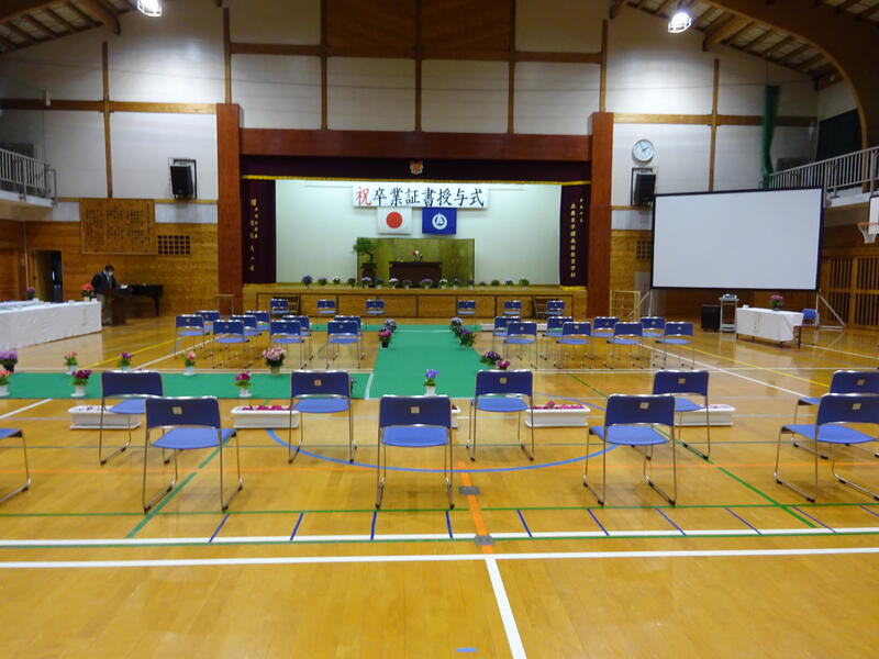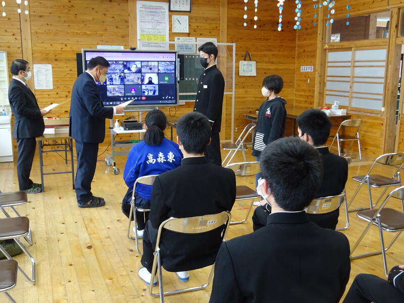 先週金曜日は、夏休み前の表彰及び県中体連へ向けた推戴式を行いました。山都町からの学校視察も来られていたので、式の様子なども見ていただきました。