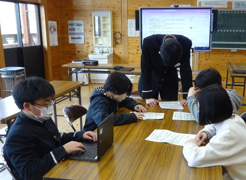 これまで5~9年生は、5つのプロジェクト(高森町「新たな学び」研究発表会で紹介)に取り組んできました。その中の社会福祉プロジェクトの取組として、社会福祉オンライン交流会を実施しました。朋遊館や高森自然学校など、町内の複数の施設をオンラインでつないで、児童生徒が考えた楽しい体操やボッチャ、ジェスチャーゲームなどを行いました。参加者の皆さんからも温かい言葉をたくさんいただきました。参加者及び協力いただいた福祉協議会の皆様ありがとうございました。
