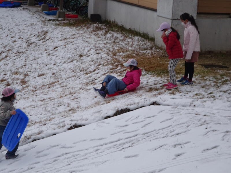 今日の東学園は、一面の銀世界でした。子どもたちは、雪の中でも雪合戦をしたり、そり滑りをしたりと雪を楽しみました。