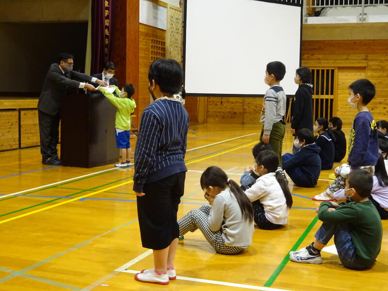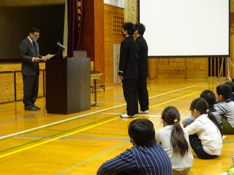 10月中旬に始まった2学期の前半が終わりました。積雪が心配でしたが、子どもたちは無事に登校することができました。3時間目には、表彰やブロックごとの集会を行いました。24日からは冬休みです。元気に過ごしてほしいと思います。