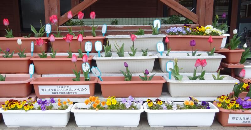 昨日夕方 民生委員さん 主任児童委員さんが、学校を花で飾っていただきました。