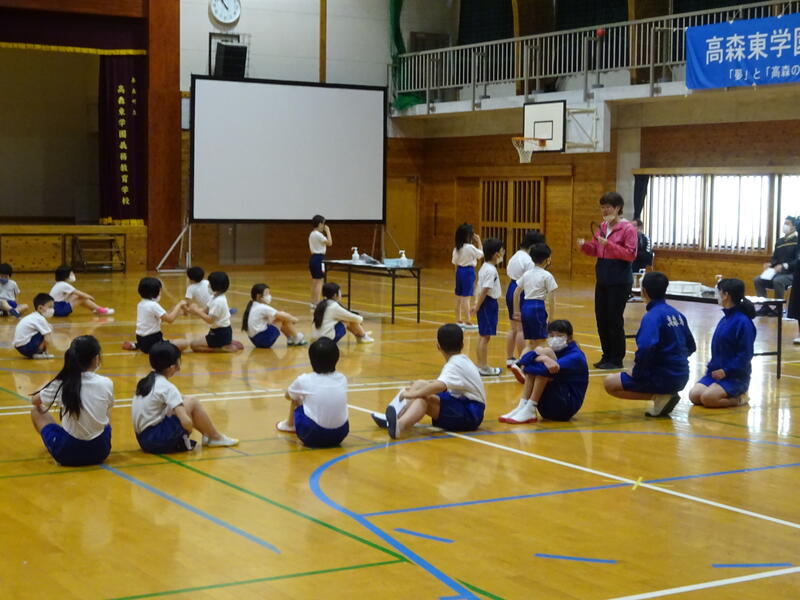 今日は、雨天となりましたが、体育館でスポーツテストを行いました。担当からの話・準備運動の後、種目にチャレンジしました。本校の特徴でもあるLブロック(8・9年生)とSブロックの1~3年生がペア学年となり、Lブロックの生徒が児童をリードしながら活動する姿も見られました。