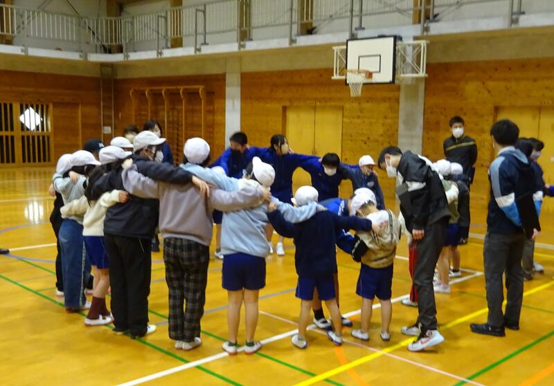 グループごとに体ほぐしの運動(人間知恵の輪)も行いました。