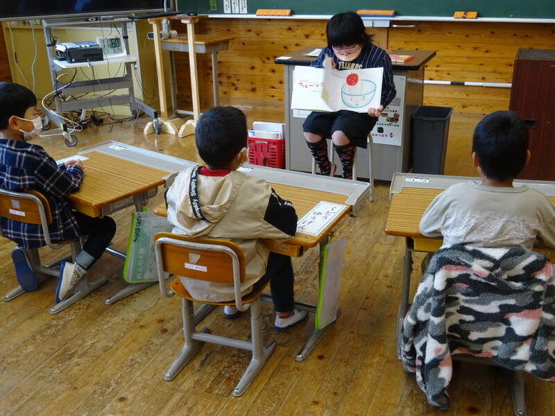 1年生は国語で「おおきなかぶ」を学習しています。今日は、来週の授業参観で音読発表するための練習を行いました。4月に入学した1年生、しっかり音読できました。