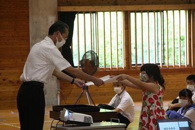 今日は、1学期の最後の日です。1時間目に終業式を行いました。校長先生の話の後には、S・M・Lの各ブロックの代表が、1学期の振り返りと2学期の目標を発表しました。2学期は13日(水)から始まります。
