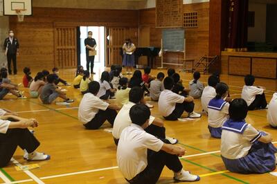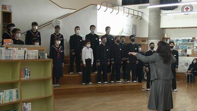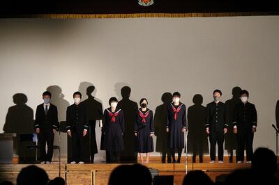 12月10日に授業参観・PTA例会・ブロック懇談会が行われました。それぞれの学年での授業を参観して頂きましたが、7~9年の後期課程では音楽の合同授業が行われました。コロナ禍でなかなか合唱がやりにくかったのですが、かなり落ち着いてきたので、合唱も可能になってきました。今回はその発表の機会ということで、保護者の皆様に参観して頂きました。