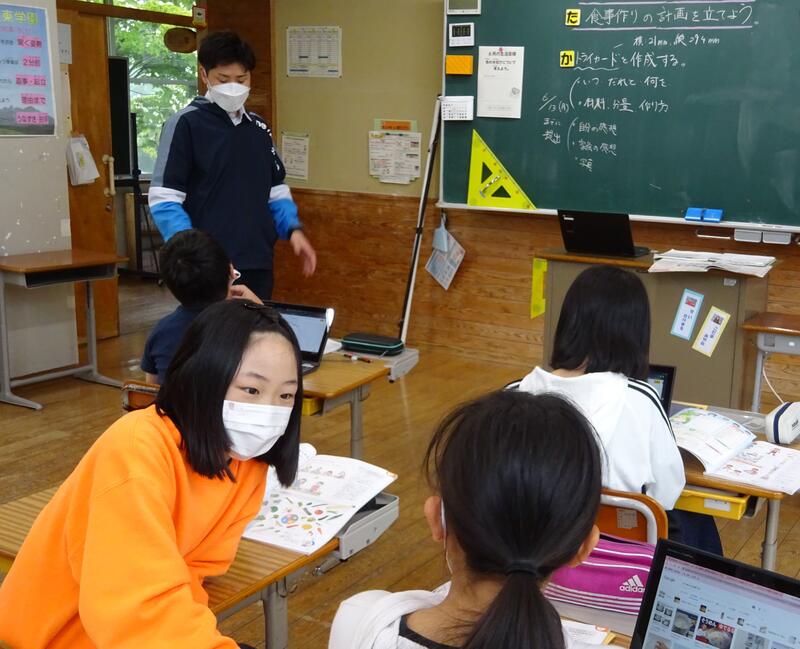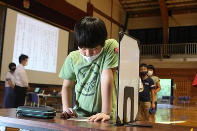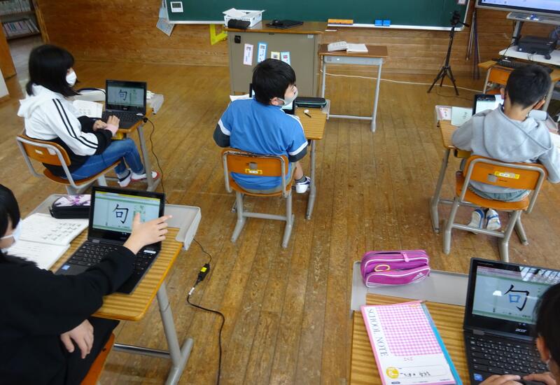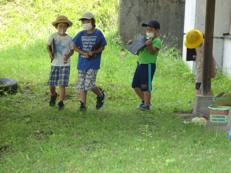 発表会にむけ、5~9年生は「高森ふるさと学」に取り組みました。その様子をタブレットを通じてご家庭でもご覧いただけるようにしています。そこで、1年生は、家でも見れるようにタブレット操作を確認しました。