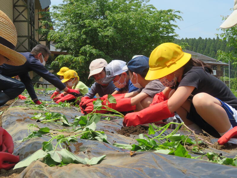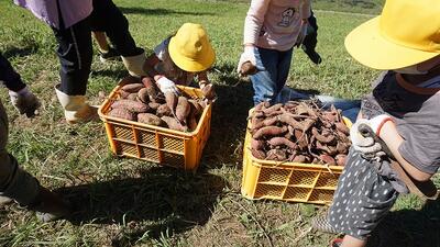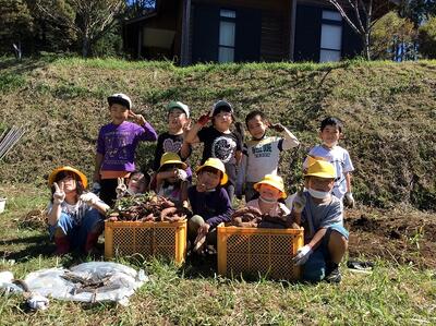 1・2年生の芋掘りの様子です。保育園からも来られて、いっしょに芋掘りをしました。たくさん収穫できて、子どもたちの笑顔が素敵でした。