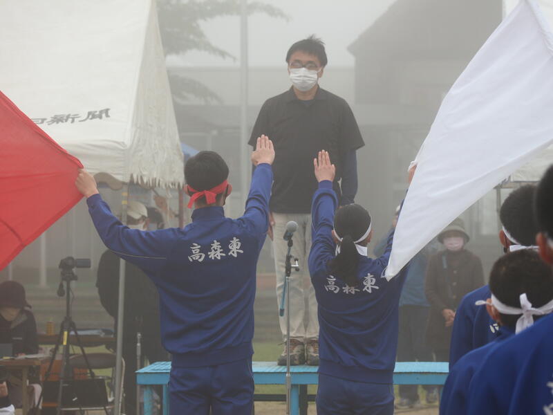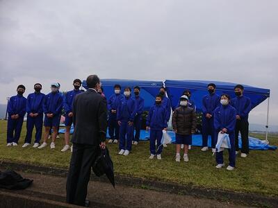 21日、中体連駅伝競走大会が阿蘇市阿蘇農村公園あぴかで行われました。東学園は後期課程19名全員で駅伝練習に取り組み、本番も選手、応援で全員で参加しました。本校は男子14名、女子5名です。なので女子に補欠はいません。ギリギリの人数での出場となりました。(昨年は、女子が4名しかおらず、4区間のみのオープン参加でした)小雨が降る中のレースでしたが、男女とも全員最後までタスキをつなぎ、健闘しました。